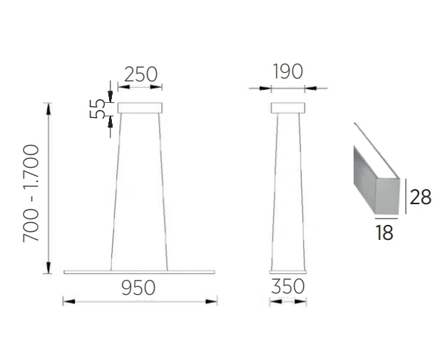 95 cm (L) x 35 cm (B) x 170 cm (H)