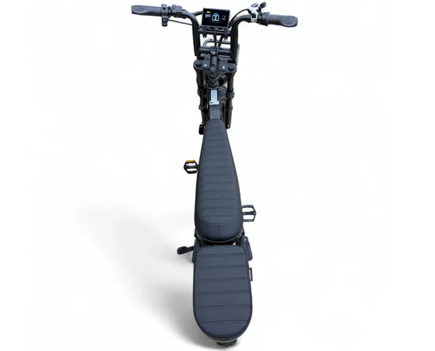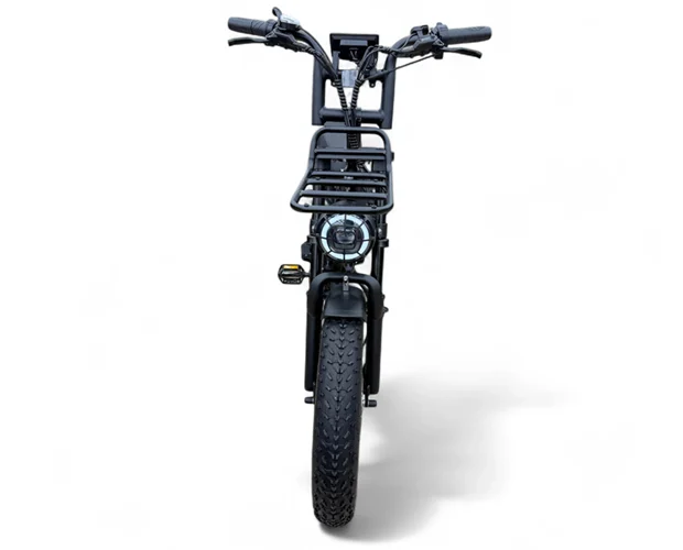 Het frame oogt robuust en modern. De zwarte afwerking geeft de fiets een strakke, tijdloze uitstraling. Dankzij de comfortabele zithouding en brede banden blijf je ontspannen fietsen, zelfs tijdens langere ritten. Alles aan deze fatbike voelt solide en doordacht.